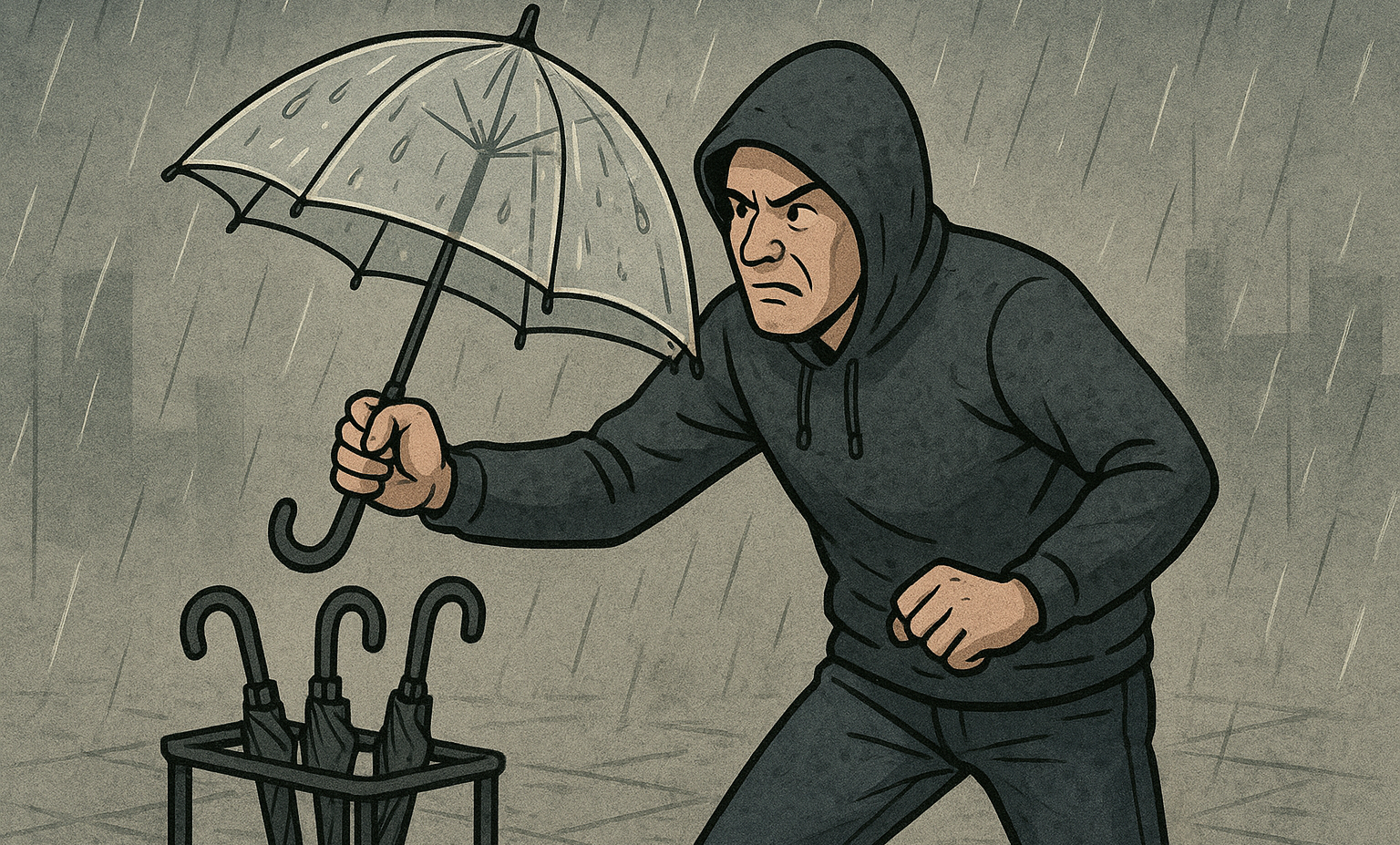そしてついた次のコンビニで買ったのは1500円の傘。ビニ傘じゃないし、なんか重いし、ボタン押すとスゥ~ジャキッ!って感じで開く、コンビニで買える中ではおそらく’’ちゃんとした’’傘。