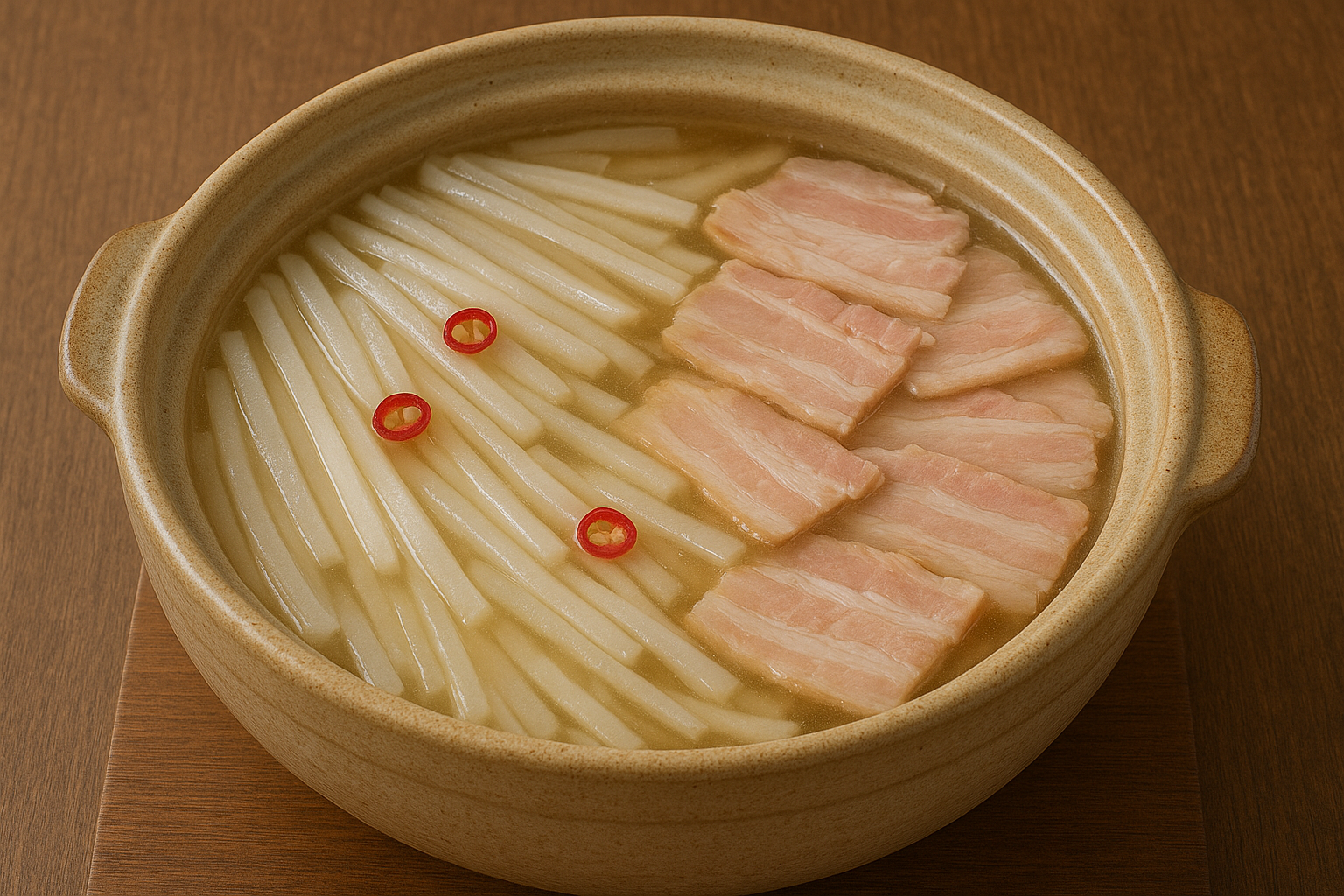 実家に居たときに親がなにかの雑誌で見かけてよく作ってくれた大根を使った鍋なんだけど、メインの材料は大根と豚バラ肉のみ(まあ脂身の多めの細切れとかでもいいはず)というシンプルパワー鍋が大好きなのでこいつを作って最近は幸せを感じている。